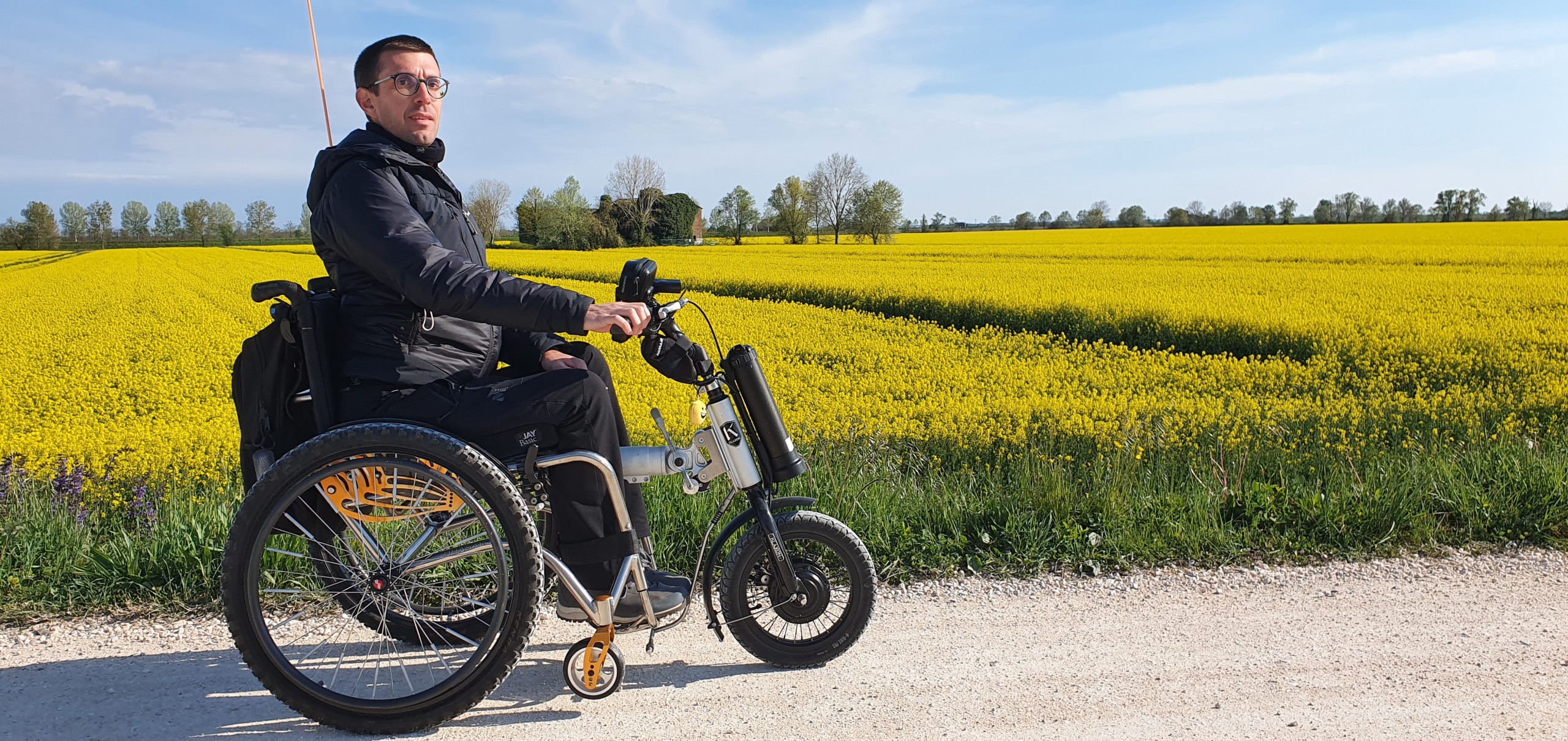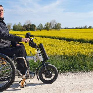 Note Tecniche: L’intero percorso è stato effettuato con sedia a rotelle Offcarr Quasar con agganciato ruotino elettrico Klaxon Klick (https://www.klaxon-klick.com/it/prodotto/klick-power/) , con batteria standard da Litio 48V x 11,6 Ah, 528 Wh. Le ruote della carrozzina sono ruote da mountain-bike 24”x1.75 di Offcarr che permettono un migliore assorbimento delle asperità