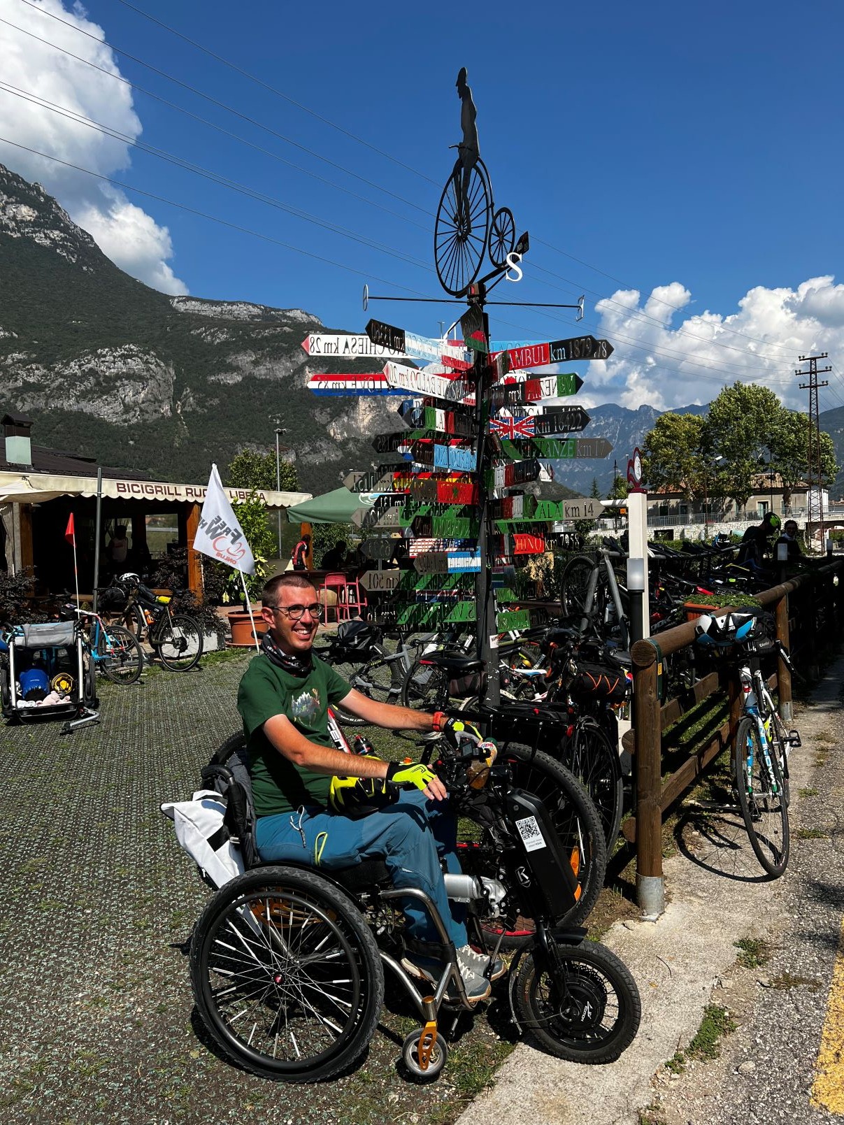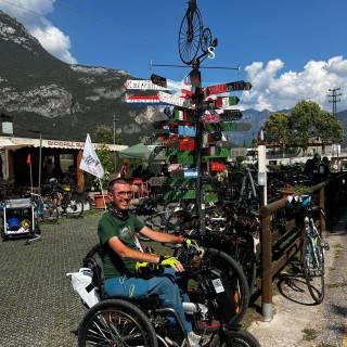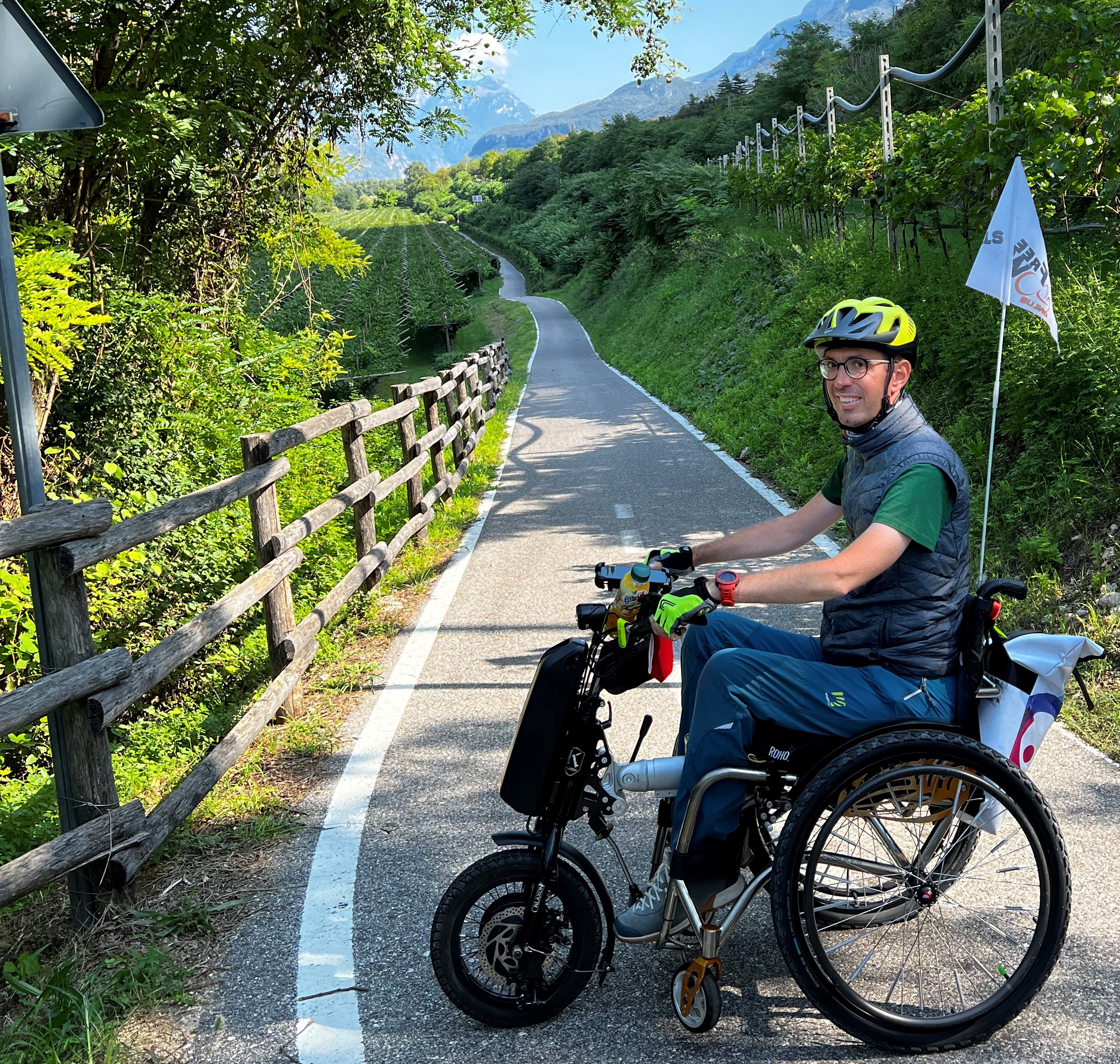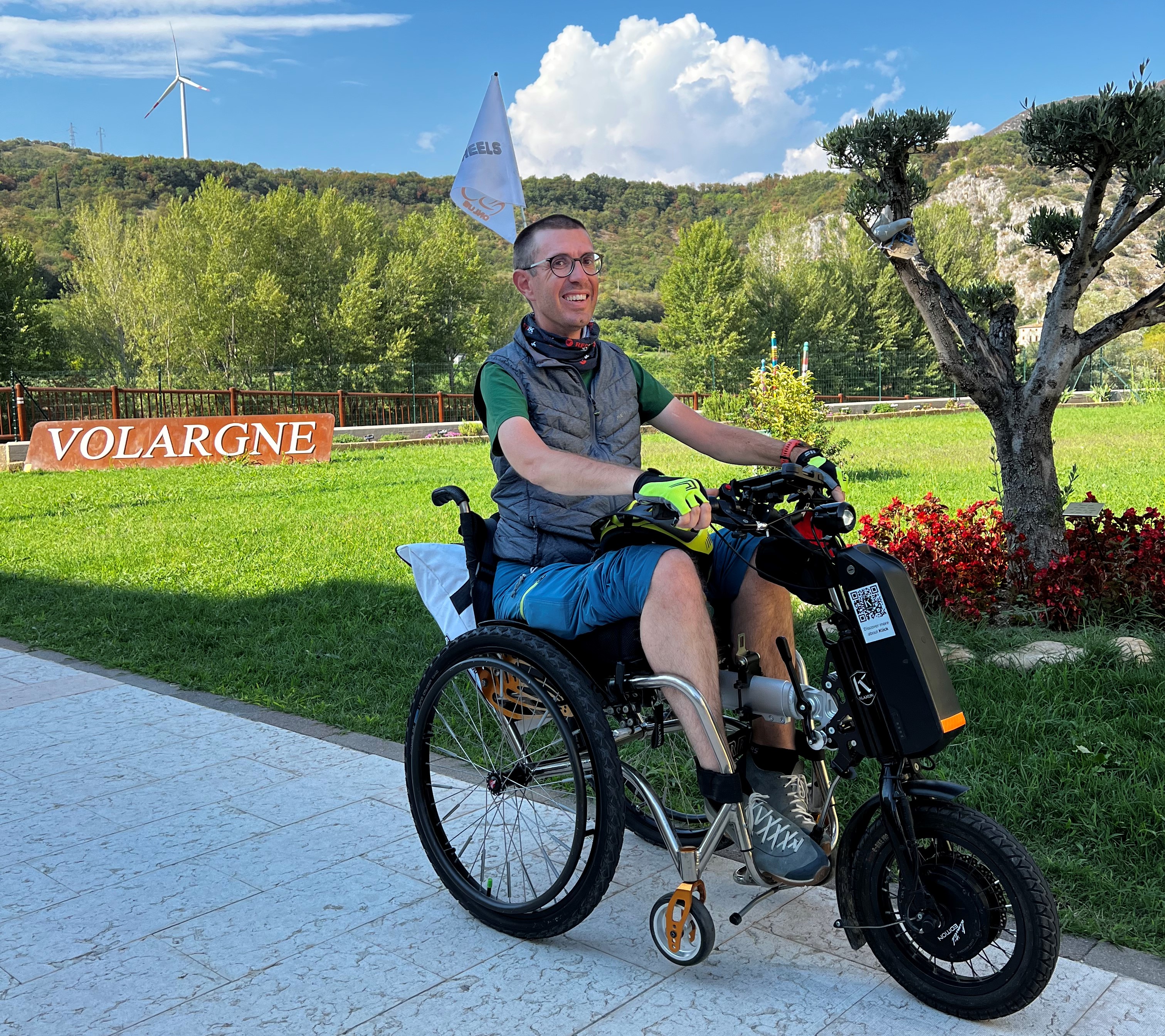 Note Tecniche: L’intero percorso è stato effettuato con sedia a rotelle Offcarr Quasar con agganciato ruotino elettrico Klaxon Klick (https://www.klaxon-klick.com/it/prodotto/klick-power/), con batteria standard da Litio 48V x 11,6 Ah, 528 Wh. Le ruote della carrozzina sono ruote da mountain-bike 24”x1.75 di Offcarr che permettono un migliore assorbimento delle asperità.