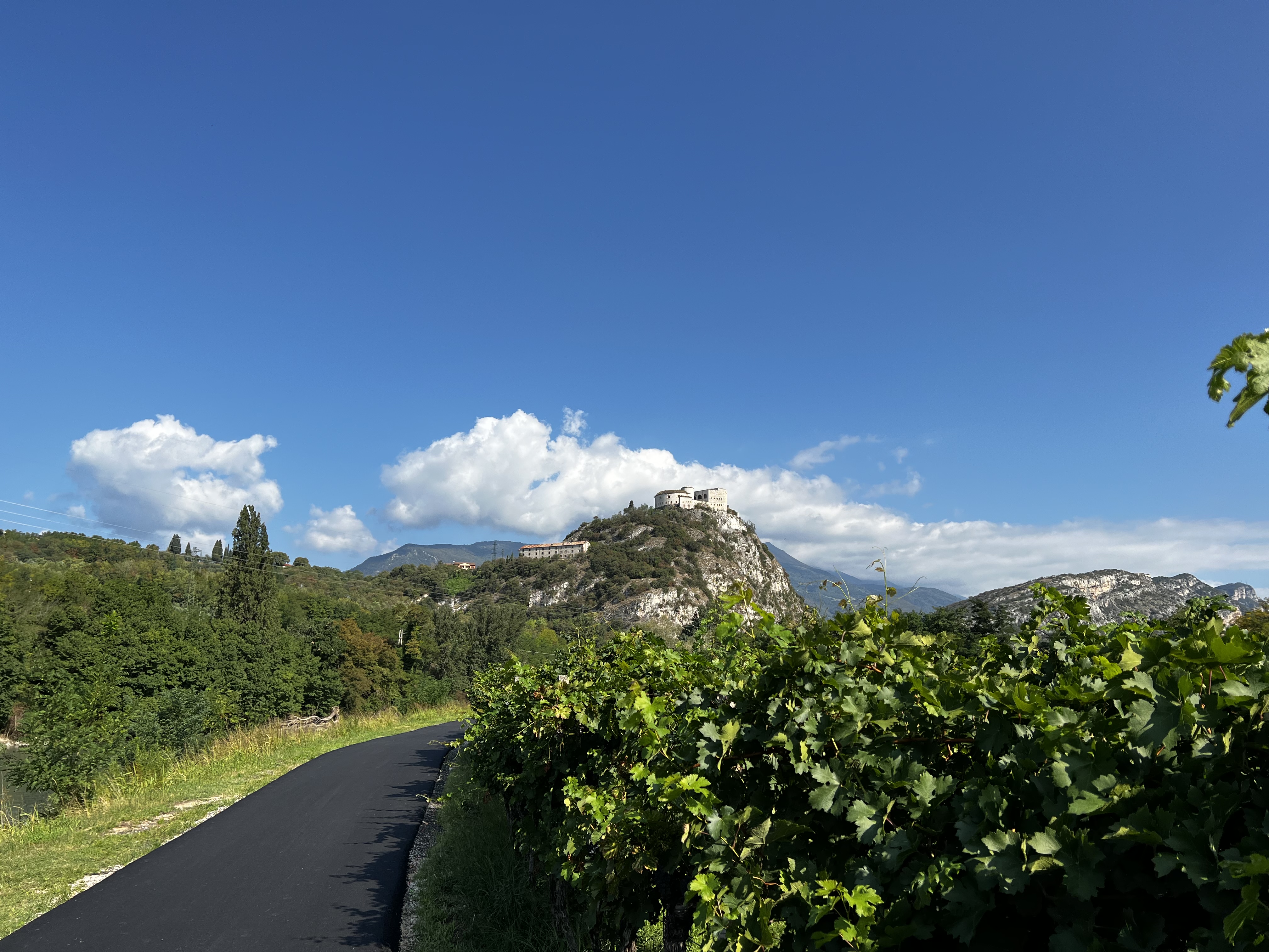 Si prosegue sempre su pista ciclabile costeggiando la ferrovia ed i vigneti fino ad arrivare a 10km dalla partenza nei pressi della Cantina Albino Armani (https://www.albinoarmani.com/) proprietaria di molti dei vigneti lungo la ciclabile, fate attenzione che proprio a lato della cantina la ciclabile per circa solo 10metri risulta essere molto pendente ( più del 10% , fate attenzione, il fondo è asfaltato, ma senza ruotino elettrico non è possibile affrontarla, a meno che non ci si faccia dare una spinta)